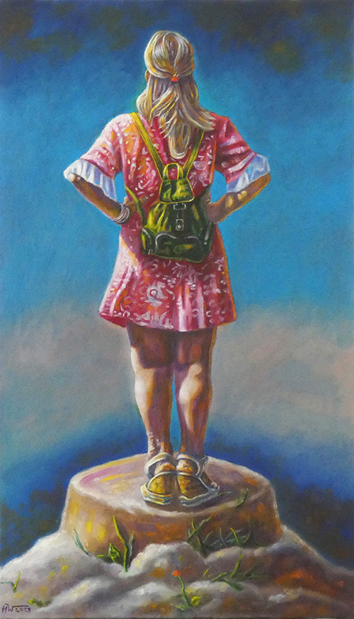 Martina auf dem Gipfel des Weges 2025 Martina at the top of the trail 2025