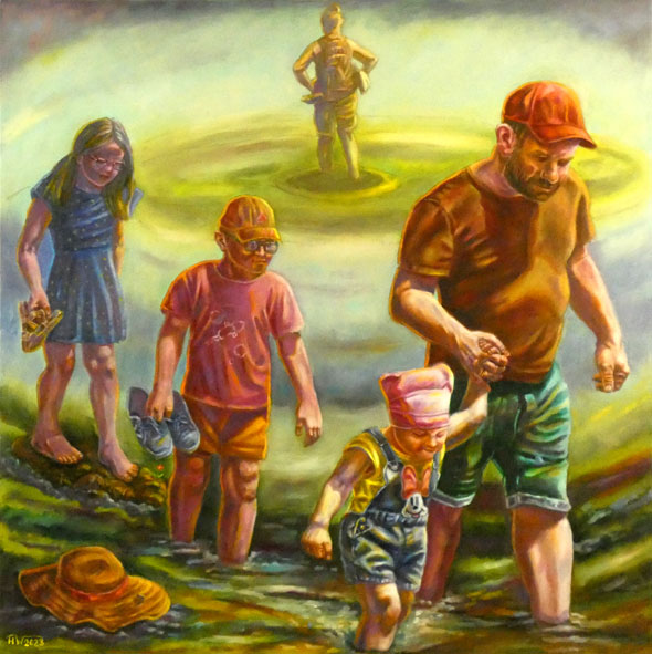 Familie Lehmann beim Überqueren der Flut 2023 Lehmann Family crossing the flood 2023