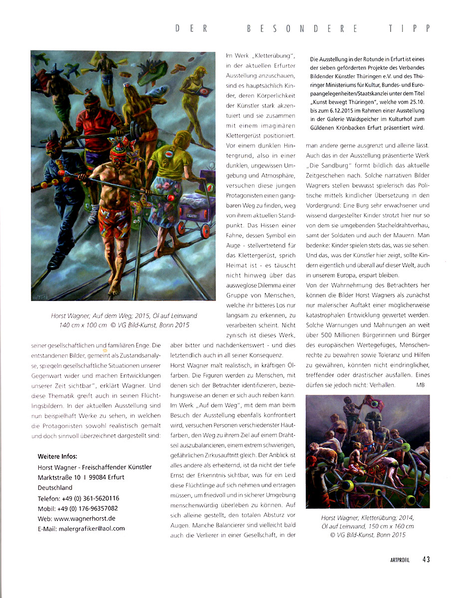 Beitrag im Kunstmagazin "ArtProfil" über Horst Wagner 2015